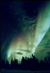 35mmカメラで撮影したオーロラの写真を繋ぎ合わせて