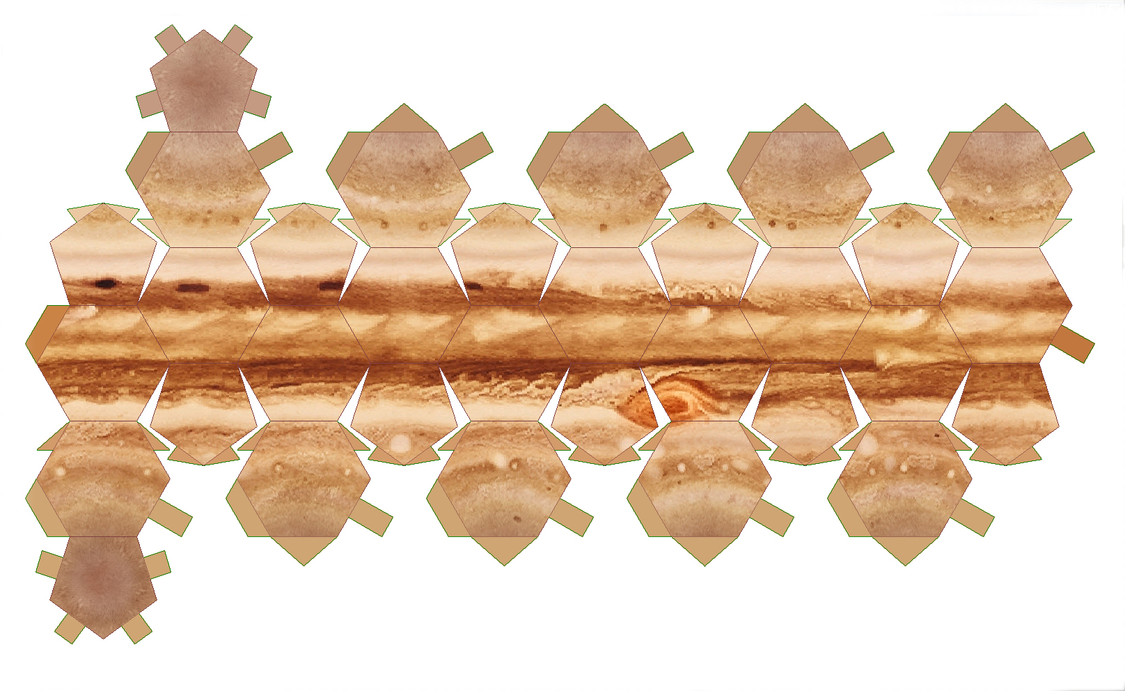 惑星儀の完成 球が完成したら、要所に接着剤をつけて完全に固定します。 地球の型紙のダウンロード 月の型紙のダウンロード 火星の型紙のダウンロード 木星の型紙のダウンロード |