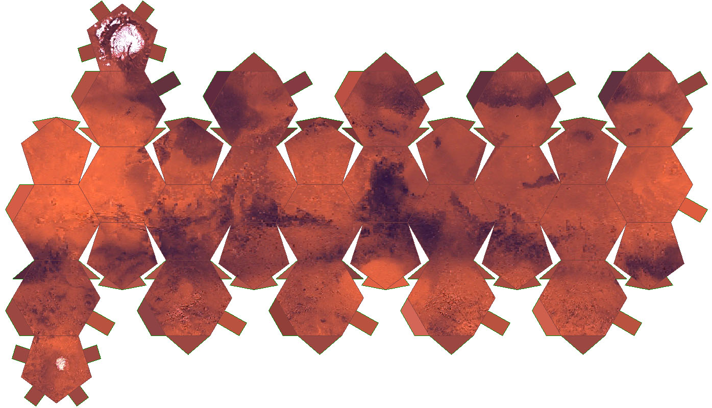 ペーパークラフトでサッカーボールの形をした惑星儀をつくります。切り出しに少々の時間を要し、根気よく工作することが求められます。 地球、月、火星、木星の4種類の型紙を用意しました。 |