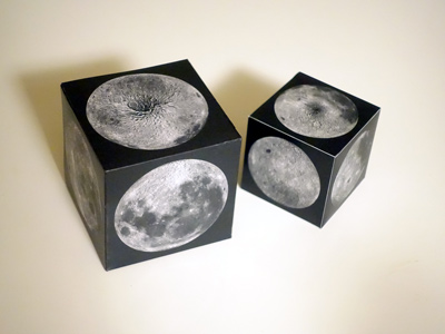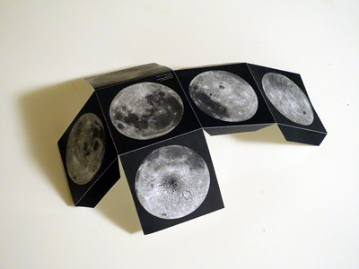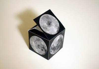 月は私たちに最も身近な天体です。月は地球に対して常にほぼ同じ方向を向けているため、形は日毎に変わっていきますが、見える模様はほとんど変わりません。 この立方体は、普段は見ることができない月の姿を眺めることができるモデルです。 |