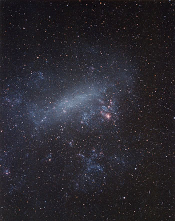 最近では、2002年にノーベル賞を受賞された小柴昌俊博士のニュートリノ検出のきっかけとなる超新星1987Aの出現した星雲として話題となりました。写真は、この超新星が出現していた時に撮影したもので、星雲の右下、ピンク色の星雲(タランチュラ星雲)の左にオレンジ色の超新星が輝いています。