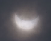 日食は、時々雲間に現れる欠けた太陽をタイミングにあわせて撮影しました。