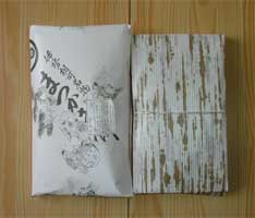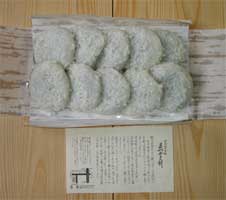 多気町相可の櫛田川右岸旧道沿いにある「長新」は、元禄年間の創業といいますから、かれこれ300年の老舗です。 ここの名物、黒餡入りのお餅に飯粒を塗した「まつかさ餅」は、その名前のとおりマツカサを模したものだとか。 黒砂糖のこしあんに櫛田川流域のお米の組み合わせは、どちらかというと地味な感じですが、これがなかなか結構なお餅です。 |