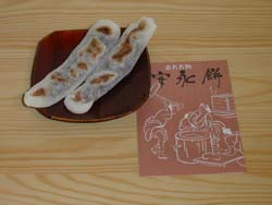 なんとなく、見掛けの似ている和菓子を食べ比べてみようという企画の第3弾は、この組み合わせです。 四日市のなが餅と桑名の安永餅。どちらも少し焦げ目をつけた長細いアンコ入りのお餅で、これまたきっと似たようなものだろうと思って比較してみたら、まったく別物でした。 |
