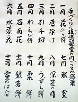 というわけで、毎月の月初めに販売されている和菓子(月ごよみ銘菓)の種類は右のとおりです。 早いうちに売り切れるので、結構お目にかかるのが難しいかも・・・ |